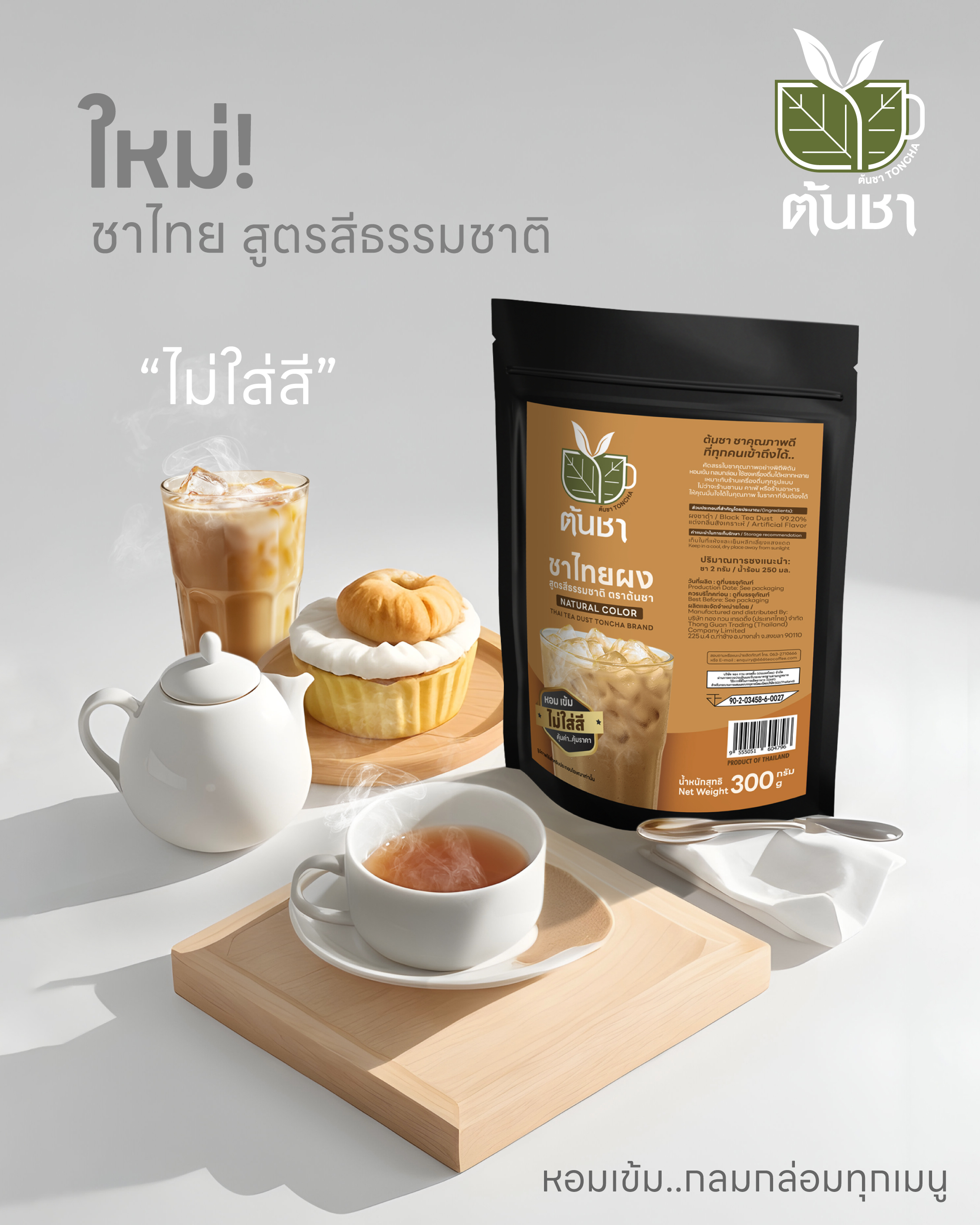 ใหม่! ต้นชา ชาไทยผง สูตรสีธรรมชาติ (ไม่ใส่สี)
